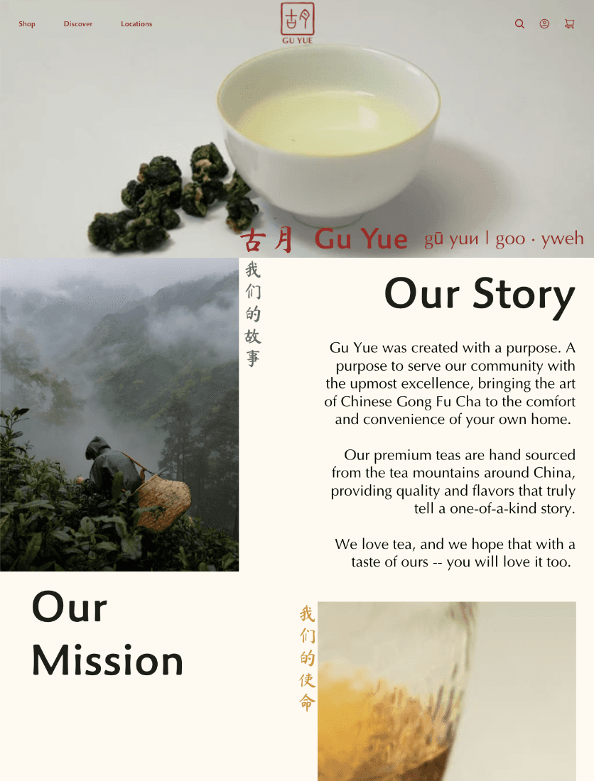 Gu Yue is an up and coming tea brand that bridges the gap in traditional chinese tea in the United States. Gu Yue aims to spread Chinese traditions and share the simplistic beauty that is Gong Fu Cha.